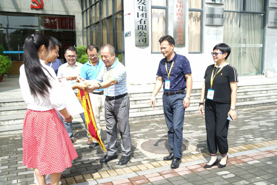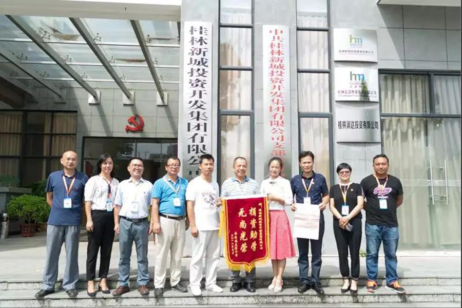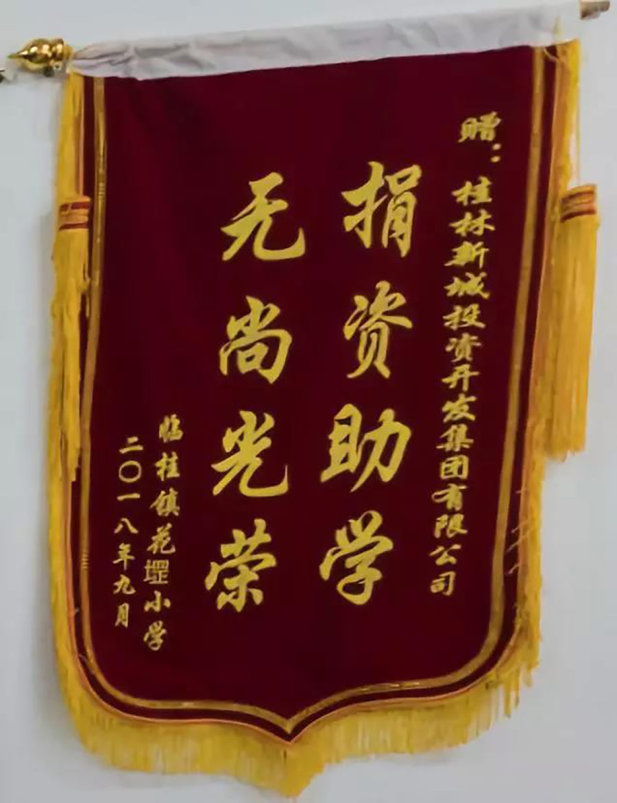 2018年9月18日上午,臨桂鎮(zhèn)花堽小學(xué)校長秦開勝、黨支部書記秦海燕將一面印有“捐資助學(xué),無尚光榮”的錦旗送到新城投資集團(tuán)。集團(tuán)公司黨支部書記周道林、集團(tuán)經(jīng)營班子、支部委員一起接受錦旗。