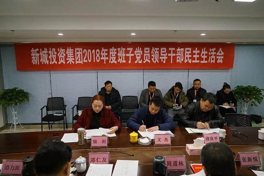 1月30日上午,新城投資集團2018年度黨員領(lǐng)導干部民主生活會在新城商務(wù)酒店辦公樓1513會議室召開。這次民主生活會,以“強化創(chuàng)新理論武裝,樹牢‘四個意識’,堅定‘四個自信’,勇于擔當作為,以求真務(wù)實作風堅決把黨中央決策部署落到實處”為主題。
