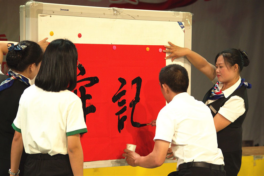 新城投資集團黨支部黨員譚佳璐書寫現(xiàn)場