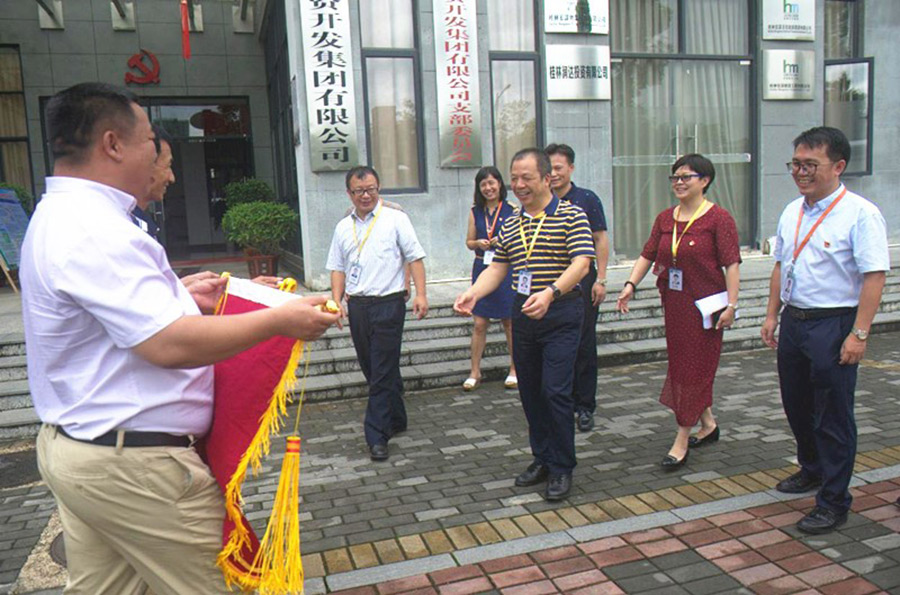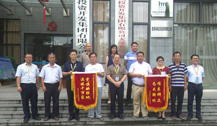 所謂綠水青山就是金山銀山,為村民們積極籌集資金清理和修復河堤,不僅保護了村里的青山綠水,同時也保護了村民的人身安全及財產(chǎn)安全。新城投資集團黨支部在臨桂新區(qū)工委和臨桂區(qū)直屬機關工委的具體指導下,積極踐行黨的十九大精神,用實際行動為群眾解決難題,辦實事,辦好事,得到了下頭陂村村民的一致認可和稱贊。村委經(jīng)過集體商量,一致決定給新城投資集團黨支部送上“黨旗映勝地,溫暖千萬家”的錦旗;給工會送上“情系群眾,為民解憂”的錦旗,表達了村民們對新城投資集團給予的支持和幫助致以誠摯的謝意。