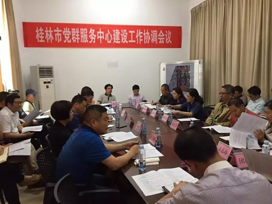上圖為桂林市黨群服務(wù)中心建設(shè)工作協(xié)調(diào)會議現(xiàn)場