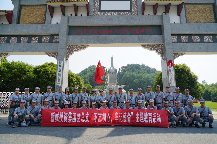 恰逢中共中央政治局委員、中央書記處書記、中宣部部長黃坤明同志受習(xí)近平總書記委托、出席全州紅軍長征湘江戰(zhàn)役紀(jì)念設(shè)施落成儀式之際,9月12日新城投資集團(tuán)黨總支全體黨員在新城投資集團(tuán)黨總支籌備工作領(lǐng)導(dǎo)小組組長、董事長周道林同志的帶領(lǐng)下,來到興安縣紅軍長征突破湘江烈士紀(jì)念碑園,現(xiàn)場開展“不忘初心、牢記使命”主題教育活動(dòng),這是新城投資集團(tuán)升格為黨總支后開展的第一次主題教育活動(dòng)。