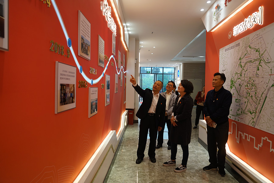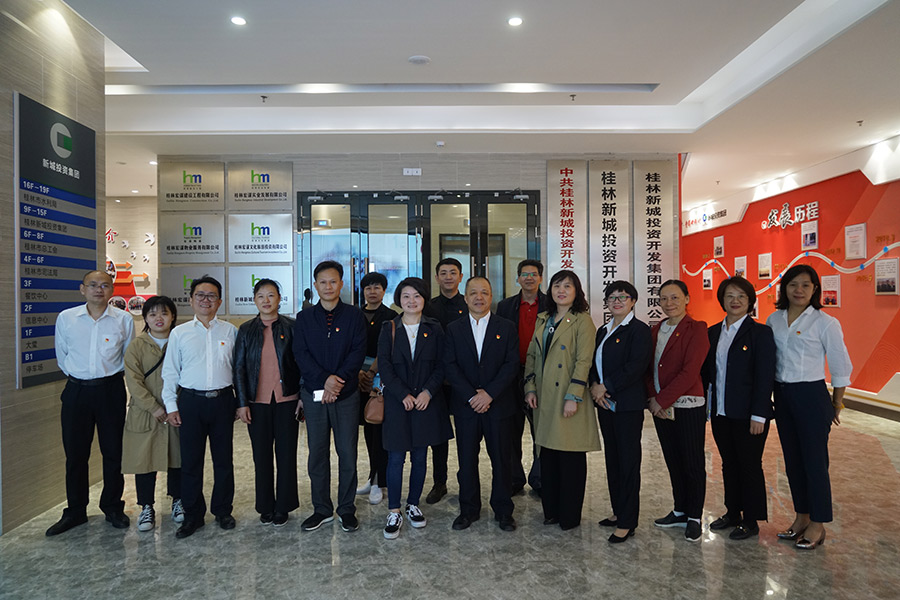 11月13日,臨桂區(qū)直機(jī)關(guān)工委書記肖揚燕一行來到新城投資集團(tuán)調(diào)研指導(dǎo)國企黨建工作。集團(tuán)公司黨支部書記、董事長周道林陪同肖揚燕參觀了新城投資集團(tuán)辦公大樓一樓、十五樓的黨群展示區(qū)。