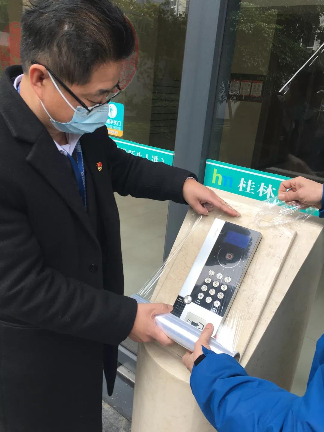 工程部在其部門負(fù)責(zé)人、共產(chǎn)黨員周成同志的帶領(lǐng)下,全員提前返崗。通過給小區(qū)所有入戶門對講系統(tǒng)及電梯內(nèi)按鍵穿上每天一換的保鮮膜“保護(hù)外套”、給每臺電梯內(nèi)裝上業(yè)主按鍵時使用的抽紙等方法,最大程度減少接觸病菌細(xì)菌的幾率,不留隱患,給業(yè)主創(chuàng)造一個健康、 安心的居家環(huán)境,為所有業(yè)主守住這道防疫防線。