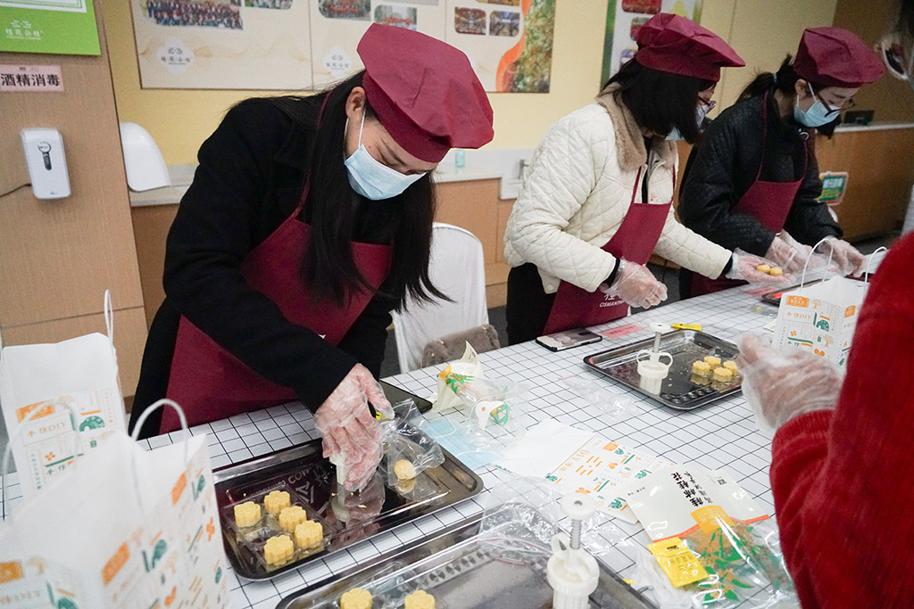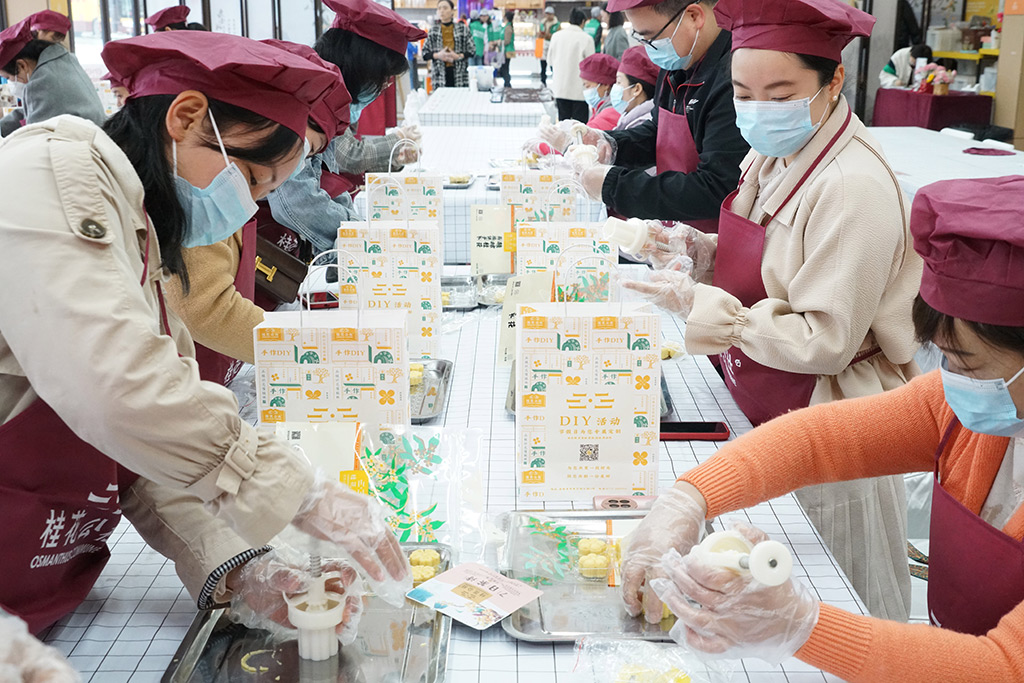 第一項(xiàng)活動是動手制作桂花糕。桂花糕在桂林已經(jīng)有近百年的歷史,因桂花得名,體現(xiàn)桂林歷史和傳統(tǒng)文化印記。大家手拿模具,在老師的指導(dǎo)下,有模有樣地動手制作桂花糕,制作過程中時而向身邊人討教制作技巧,時而交換模具制作出不同的樣式,歡聲笑語中一個個芳香四溢的桂花糕躍然眼前,女職工們體驗(yàn)到了勞動帶來的快樂愉悅。