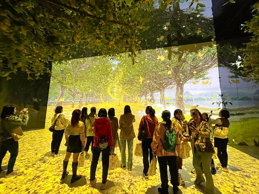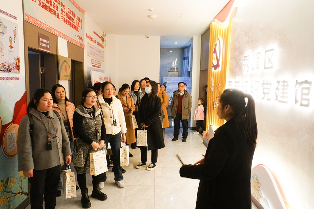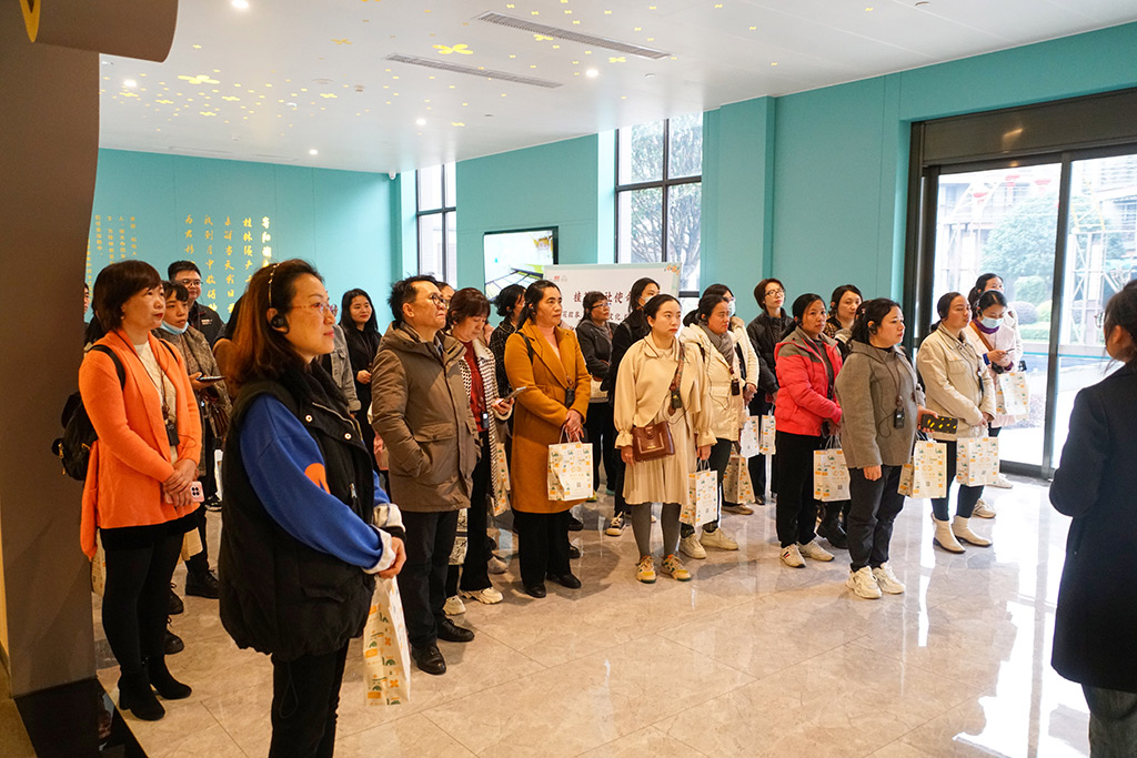 第二項(xiàng)活動是參觀桂花文化體驗(yàn)館,在兩新組織黨建館,大家重溫了百年大黨從成立之初到新時代的光輝歷程,一幅幅舊照片展示了一段段珍貴的歷史,一行行舊文字記載了激情燃燒的歲月。參觀過后女職工們深受激勵和鼓舞,表示要充分發(fā)揮自身積極熱情、耐心細(xì)致、善于做群眾工作的優(yōu)勢和特點(diǎn),在各自崗位作出新的成績。在桂花文化主題館,女職工們在講解員的帶領(lǐng)下,深入了解了桂林與桂花的深厚淵源,以及獨(dú)特文化魅力,近距離體驗(yàn)桂花的香味與傳奇。通過觀看沉浸式桂花動畫,引得大家傳來陣陣的驚嘆聲、歡呼聲,那是能夠感同身受的桂花雨落和沁人心脾。桂花蜜、桂花酒、桂花潤膚乳等一系列衍生產(chǎn)品展現(xiàn),讓大家增進(jìn)了對桂花及桂林傳統(tǒng)民族文化的了解和興趣,增強(qiáng)了地域民族文化認(rèn)同感。