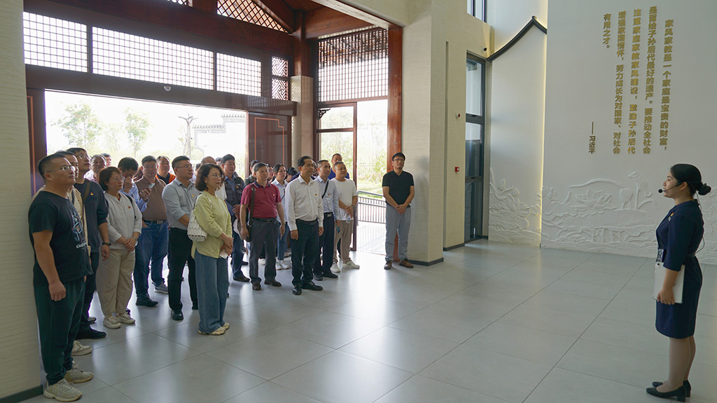 黨課結(jié)束后,駐桂林市工作隊(duì)與新城投集團(tuán)全員在講解員的帶領(lǐng)下,依次參觀了廣西家教家風(fēng)基地先賢家風(fēng)、紅色家風(fēng)、時代先鋒展廳。通過觀看一系列珍貴的歷史照片、泛黃的家書以及深刻的家訓(xùn),仿佛與古代先賢、革命前輩時空對話,領(lǐng)悟他們堅定信念和崇高品德,深刻感受家風(fēng)家教在傳承紅色基因、弘揚(yáng)革命精神中的重要作用。大家紛紛表示,基地中蘊(yùn)含的家教智慧、廉政思想和優(yōu)良家風(fēng),值得如今每一個“小家”借鑒弘揚(yáng)。陳湛林以《靈川古韻頌家風(fēng)》為題賦詩一首,表達(dá)自己的所思所想、所感所悟?!办`川大地映晴空,江頭村內(nèi)訪古蹤。家風(fēng)淳厚傳千古,示范基地蘊(yùn)德濃。碧瓦紅墻話廉政,碑文石刻醒心胸。子孫后代當(dāng)自勵,清廉家訓(xùn)永相從?!?/span>