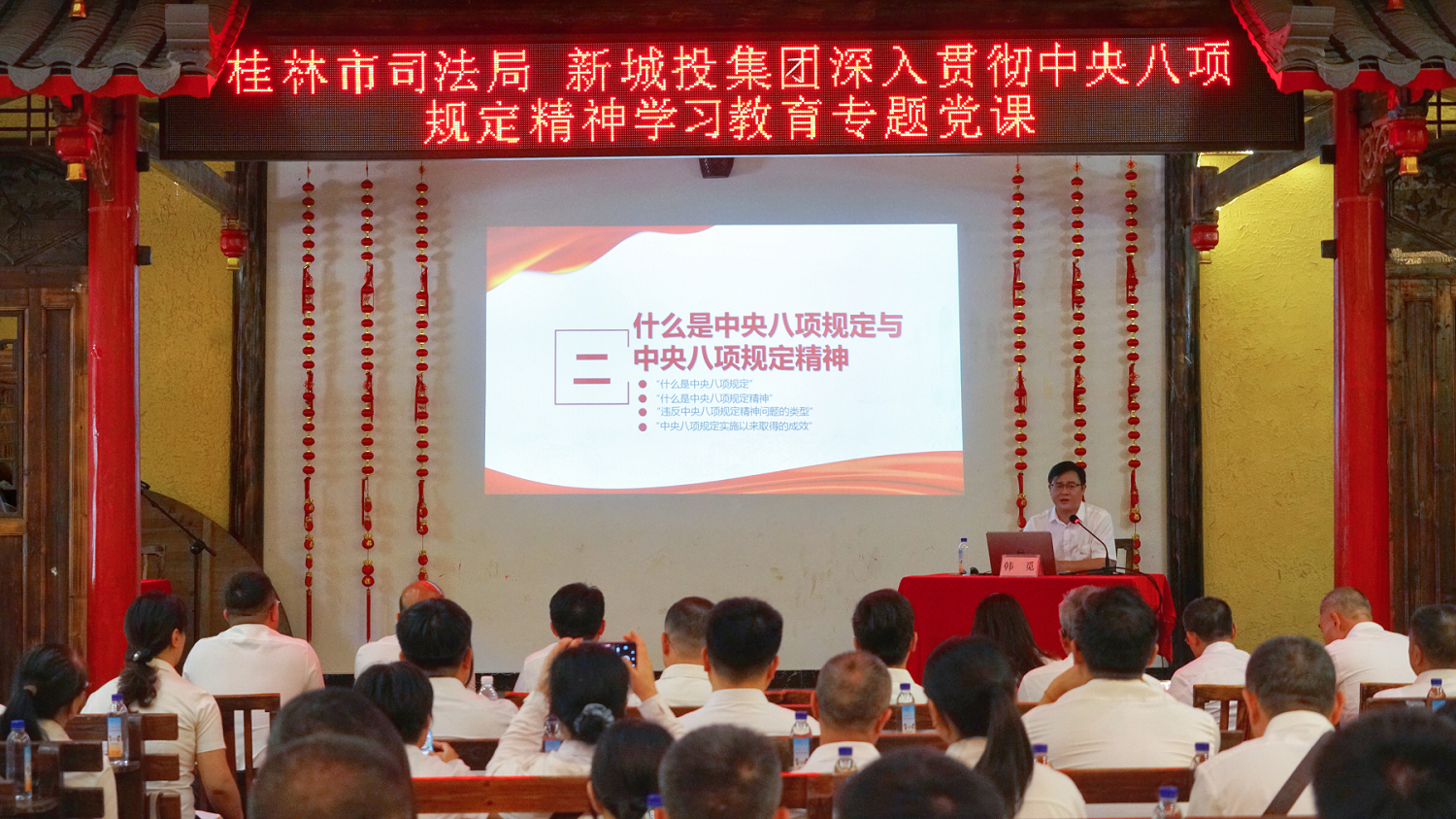 隨后,韓覓同志為全體人員講授了一堂專題黨課。以“深學篤行習近平總書記關于加強黨的作風建設的重要論述 持續(xù)擦亮中央八項規(guī)定‘金色名片’以作風建設新成效推動司法行政工作和國有企業(yè)內控高質量發(fā)展”為題,圍繞“為什么要強調作風建設,什么是中央八項規(guī)定與中央八項規(guī)定精神,如何開展好深入貫徹中央八項規(guī)定精神學習教育”三個方面,重點闡述了“為什么、是什么、怎么做”,進一步增強了黨員干部紀律意識和規(guī)矩意識,對切實改進工作作風具有很強的指導意義。