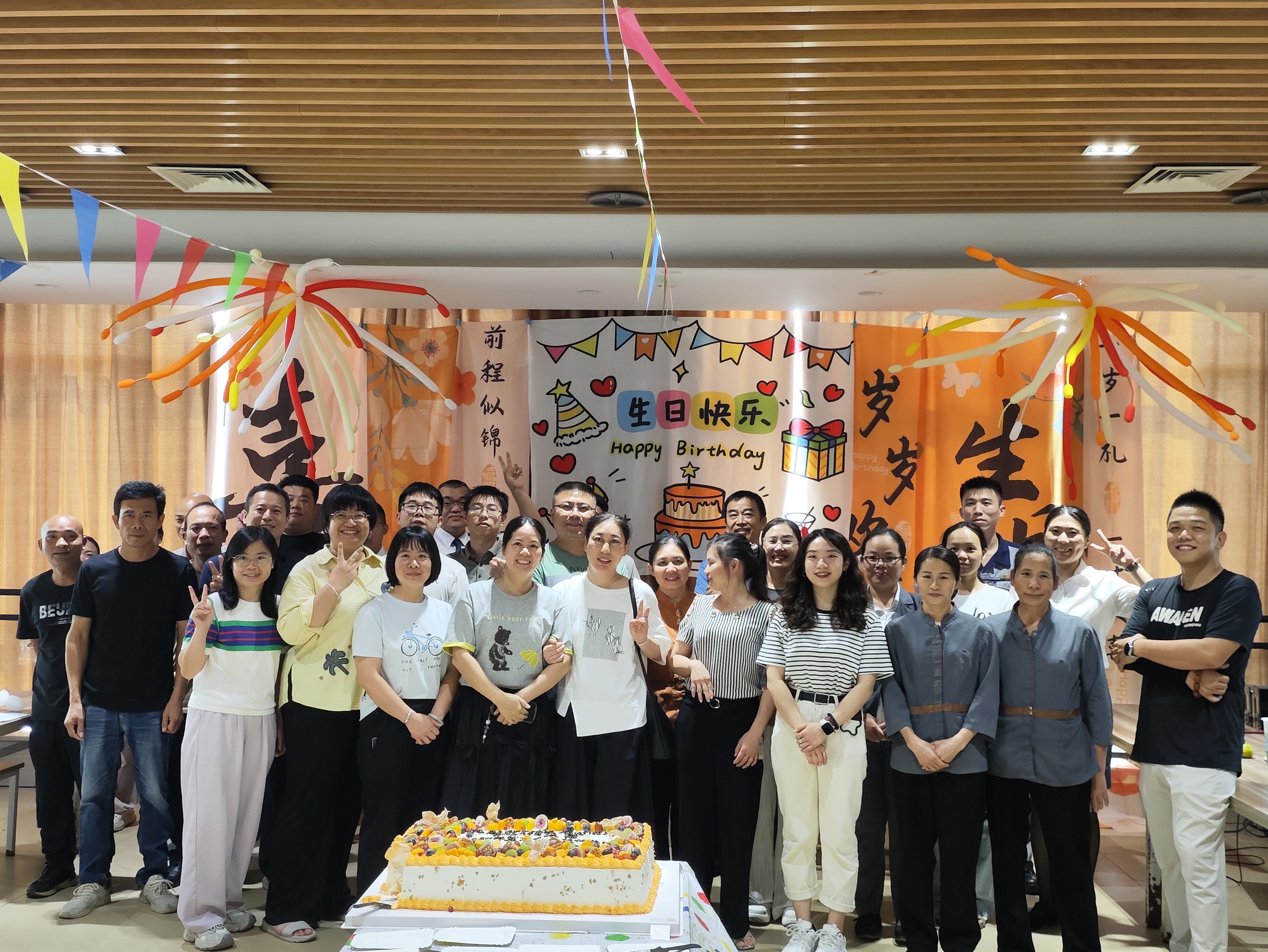 在溫馨的生日歌聲中,壽星們許下心愿,共同吹滅蠟燭。甜蜜的蛋糕被分切分享,幸福的味道在每個人心間彌漫。最后,大家齊聚舞臺前,定格下充滿笑容的合影,為本次生日會畫上圓滿的句號。