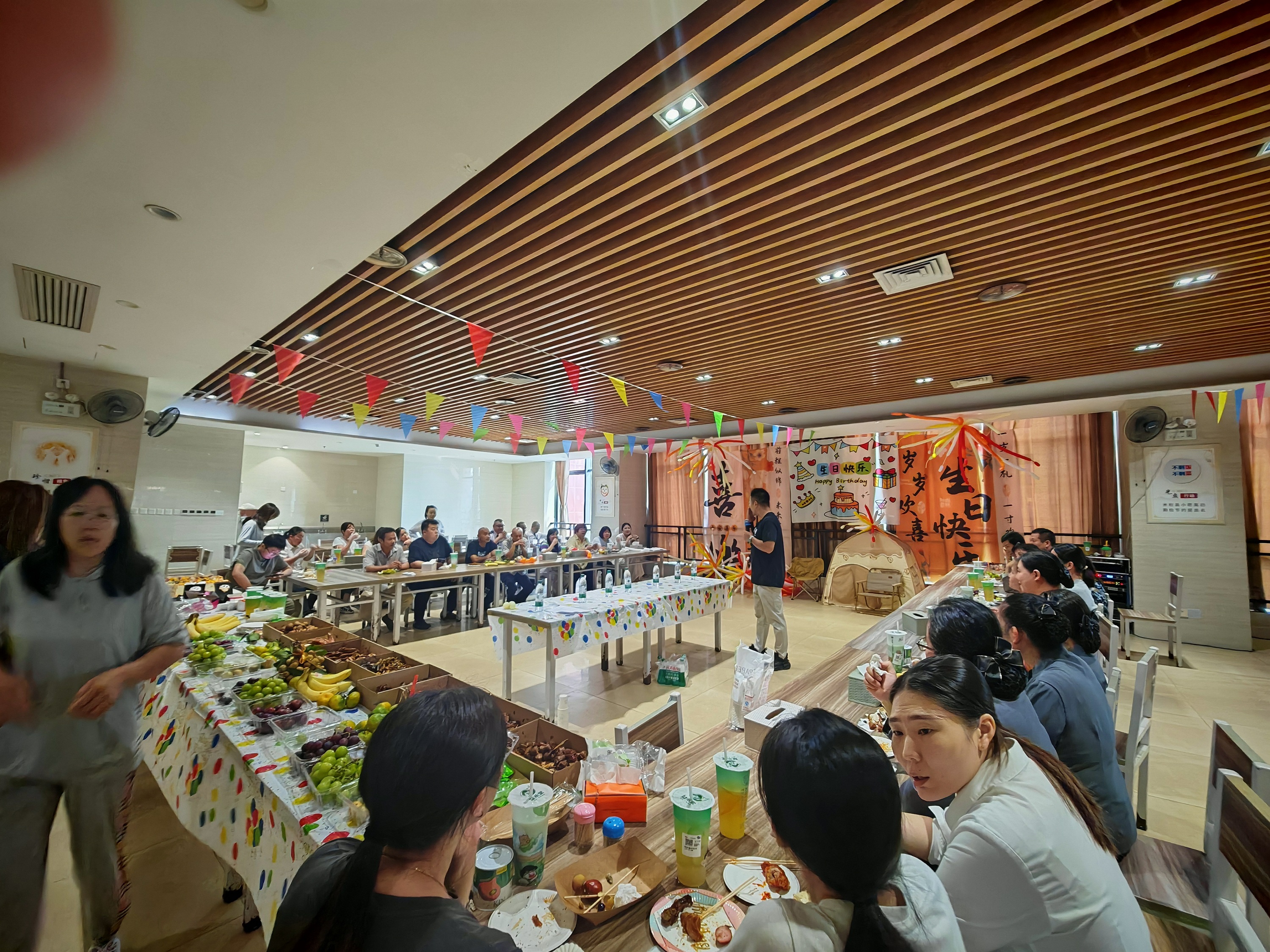 為了給壽星們留下難忘的回憶,建設(shè)分會早早開始準(zhǔn)備。從蛋糕、飲品、小吃到小禮品,每一處都體現(xiàn)著貼心;會場布置則洋溢著秋日氣息,簽到區(qū)、下午茶區(qū)、游戲區(qū)一應(yīng)俱全。彩帶與氣球點綴下的現(xiàn)場,讓大家一踏入就感受到濃濃的節(jié)日氛圍。