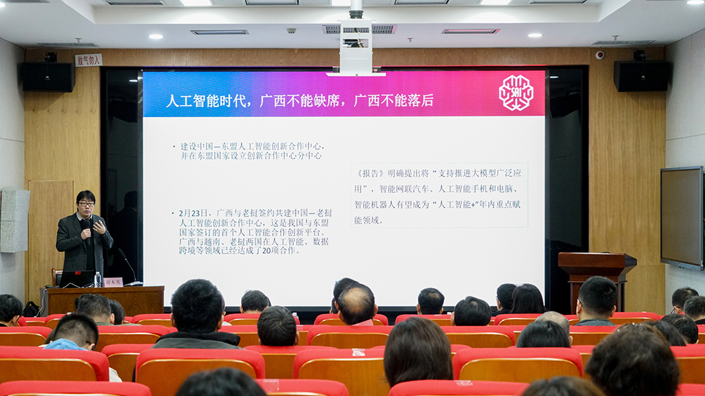 為深入貫徹落實(shí)2025年全國(guó)兩會(huì)關(guān)于持續(xù)推進(jìn)“人工智能+”行動(dòng)方針,深刻領(lǐng)會(huì)習(xí)近平總書記關(guān)于人工智能的重要論述,積極響應(yīng)自治區(qū)黨委陳剛書記對(duì)廣西人工智能發(fā)展的重要“布局落子”,2025年3月14日,新城投集團(tuán)主動(dòng)擁抱人工智能,攜手廣西實(shí)體經(jīng)濟(jì)服務(wù)員工作隊(duì)駐桂林市工作隊(duì)(以下簡(jiǎn)稱工作隊(duì))、市國(guó)資委,在桂林市黨群服務(wù)中心共同開展《人工智能+實(shí)體經(jīng)濟(jì)、國(guó)有企業(yè)轉(zhuǎn)型與高質(zhì)量發(fā)展》主題宣講會(huì)。