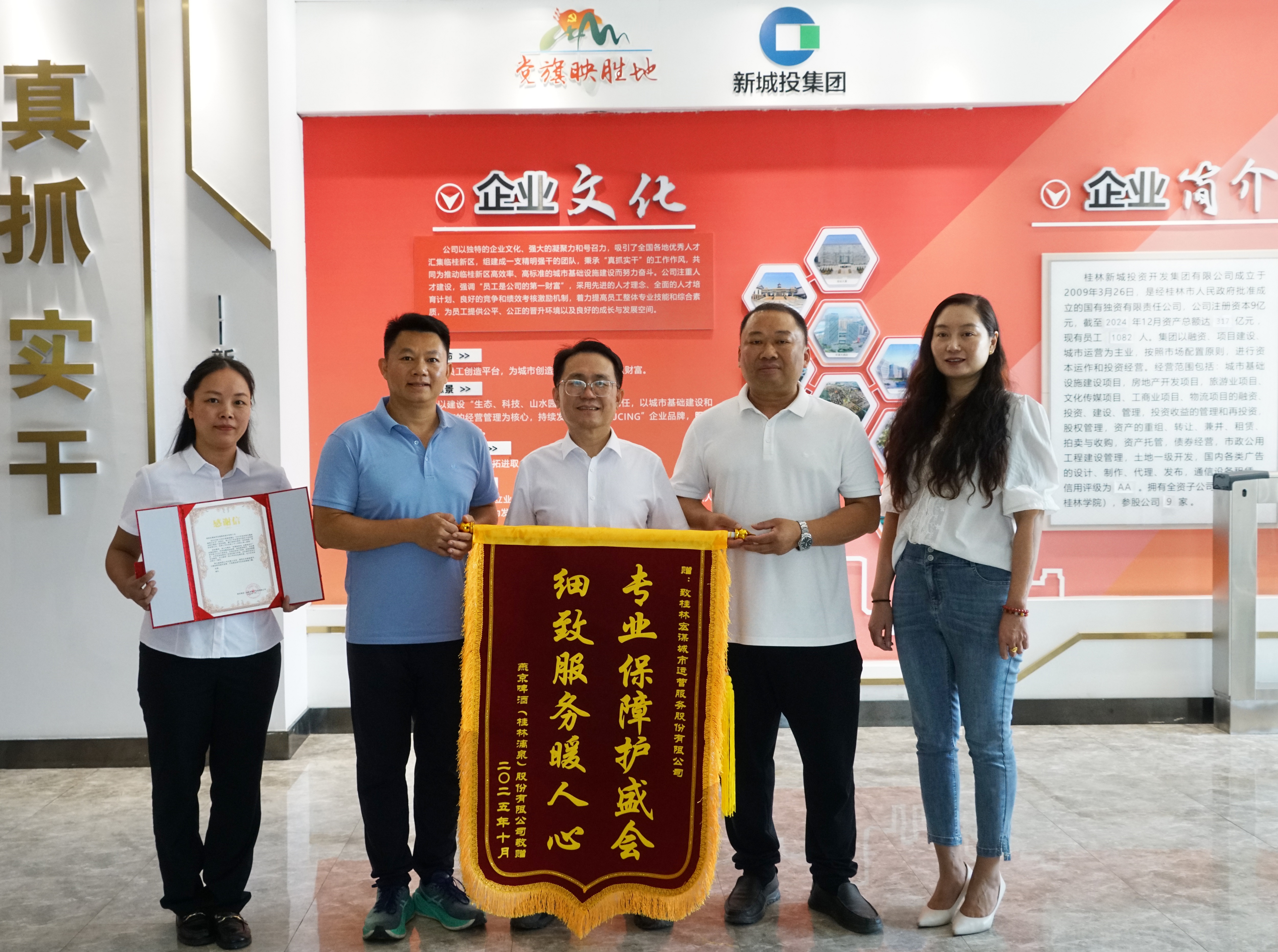 2025年10月16日,燕京啤酒(桂林漓泉)股份有限公司將“場地保障奠基石 同心共筑城市興”、“專業(yè)保障護(hù)盛會 細(xì)致服務(wù)暖人心”兩面錦旗及感謝信送到新城投集團(tuán),對新城投集團(tuán)及其子公司宏謀城運(yùn)公司在2025年9月26 - 10月8日臨桂區(qū)七彩煙花秀暨燕京漓泉啤酒文化節(jié)期間,提供堅(jiān)實(shí)后勤保障,助力活動圓滿落幕表示感謝。