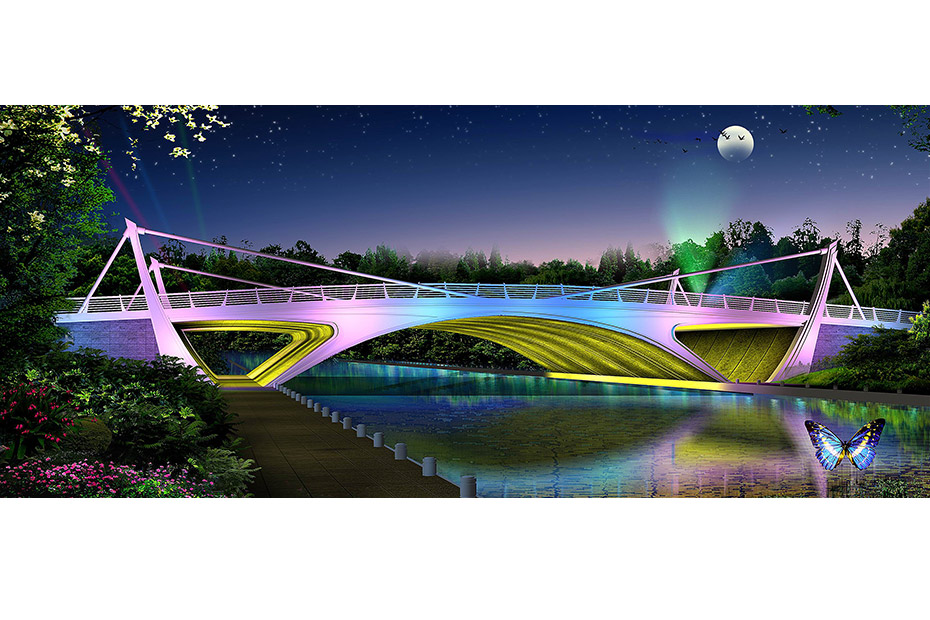 新龍橋由上海市政交通設(shè)計(jì)研究院有限公司設(shè)計(jì),于2016年10月30日開(kāi)工建設(shè)。橋梁為鋼筋混凝土斜腿鋼構(gòu),橋臺(tái)采用鋼筋混凝土結(jié)構(gòu),橋身橫跨核心區(qū)水系沙溏河,長(zhǎng)56米,寬47米,橋下的景觀游船河道42米,是連接新、老城區(qū)的重要樞紐橋梁