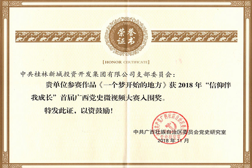 2019年3月5日,臨桂新區(qū)管委會(huì)、新城投資集團(tuán)《家和萬(wàn)事興》喜獲“爭(zhēng)做時(shí)代新女性·傳承美德沐書香”國(guó)學(xué)經(jīng)典誦讀比賽二等獎(jiǎng)
