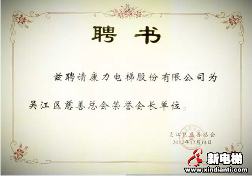 康力電梯受聘為蘇州市吳江區(qū)慈善總會榮譽會長單位