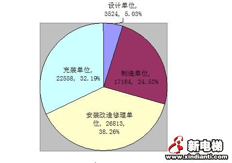 截至2016年底,全國(guó)共有特種設(shè)備生產(chǎn)(含設(shè)計(jì)、制造、安裝、改造、修理、氣體充裝)單位70079家,持有許可證70382張,其中:設(shè)計(jì)單位3524家,制造單位17184家,安裝改造修理單位26813家,移動(dòng)式壓力容器及氣瓶充裝單位22558家。