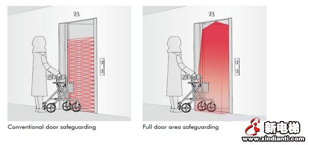類似的光電感應(yīng)技術(shù)TOF Start還可用于扶梯入口處固定范圍內(nèi)的保護(hù)。