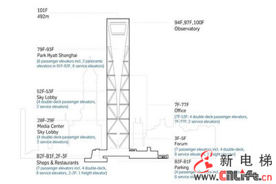 圖1:上海環(huán)球金融中心蒂森克虜伯電梯分布示意圖