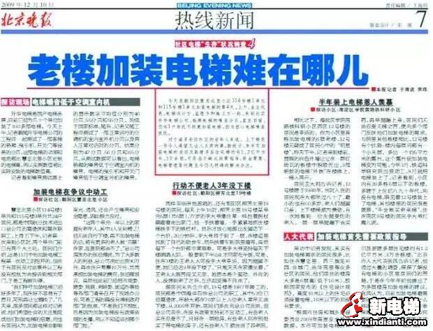 早在2009年,北京晚報就進行過《社區(qū)電梯“生存”狀況調(diào)查》系列報道。當時,記者深入20多個社區(qū),通過準確詳實的事例,深度剖析了一些社區(qū)在電梯上面臨和存在的問題。報道刊發(fā)后很快引起了廣大讀者的共鳴。