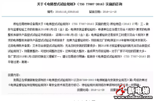 核心提示:《電梯型式試驗(yàn)規(guī)則》(TSGT7007-2016,以下簡稱《規(guī)則》)已經(jīng)于2016年7月1日起施行,為此質(zhì)檢總局特種設(shè)備局發(fā)布了《質(zhì)檢總局特種設(shè)備局關(guān)于《電梯型式試驗(yàn)規(guī)則》(TSGT7007-2016)實(shí)施的意見(質(zhì)檢特函〔2016〕27號)》(以下簡稱《質(zhì)檢特函〔2016〕27號》)