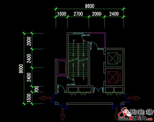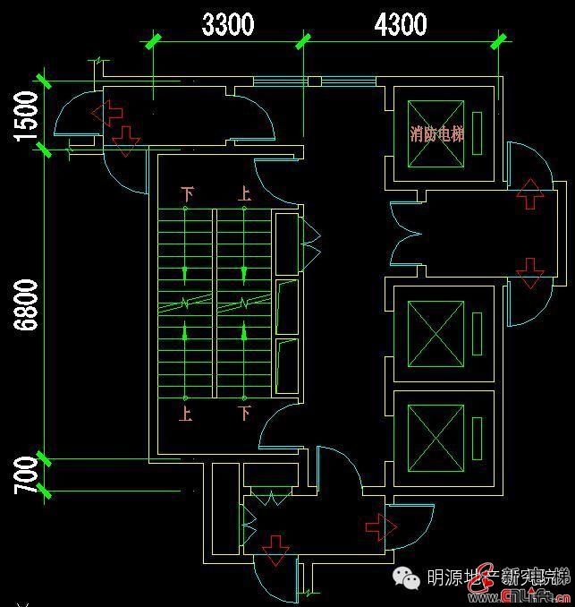 樓梯尺寸:開間2700mm/3300mm,進(jìn)深7800mm /6800mm(防煙樓梯間兩部)