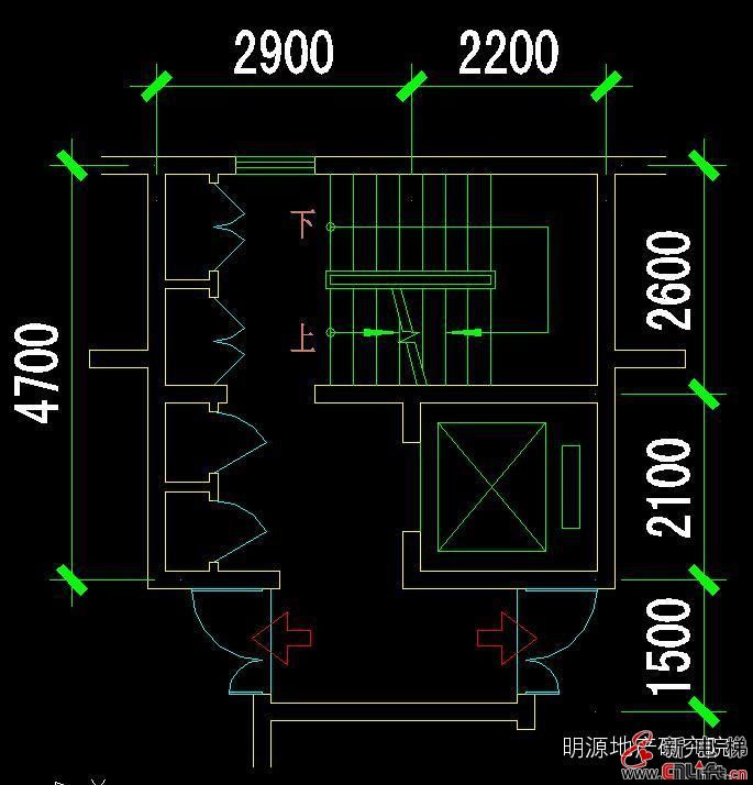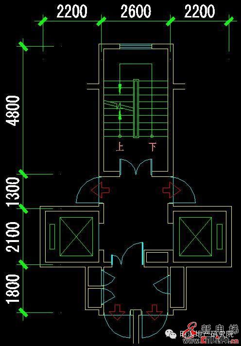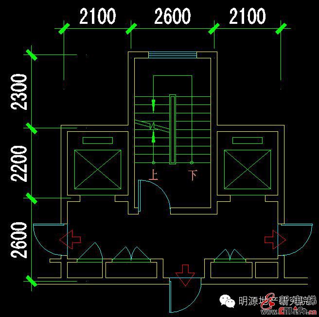 電梯井軸線尺寸:2100(寬)X2200(深);
