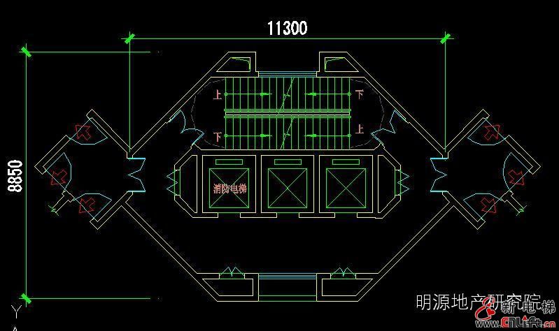 采光和通風(fēng)性:樓梯間直接采光,比較明亮;候梯空間間接采光,效果相對較差;