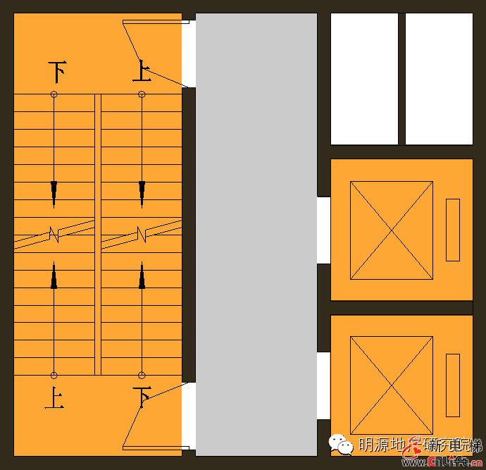 樓梯+電梯的三種基本組合: