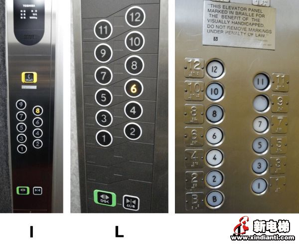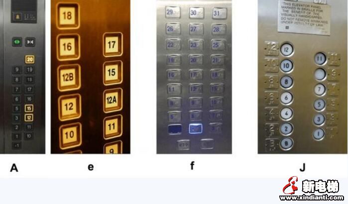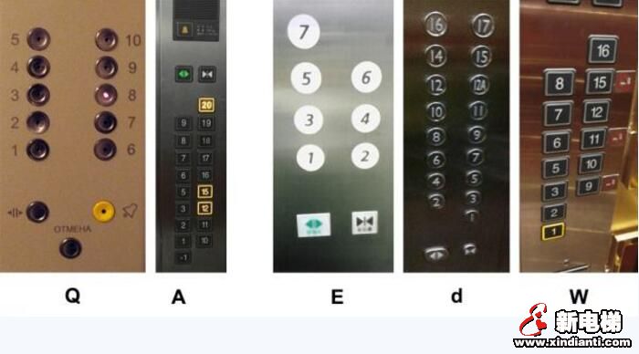覺得這一小塊可操作區(qū)域很有趣很值得分析之后,好奇之下找了不少圖進(jìn)行研究,五花八門的設(shè)計(jì)實(shí)在是讓人覺得有點(diǎn)頭疼。稍稍匯總分析了一下各種電梯按鍵設(shè)計(jì)上的不同和其中的種種不合理之處。