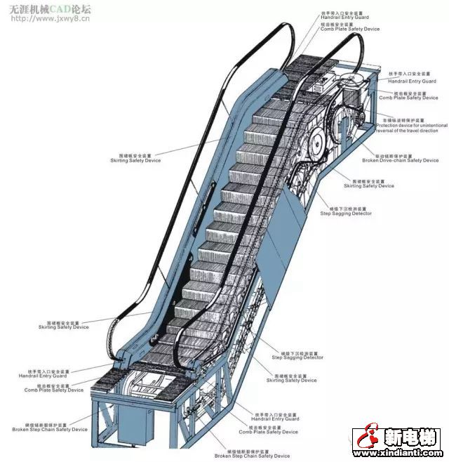 超速保護裝置是自動扶梯的運行速度超過限定值時,能自動切斷電源的裝置。