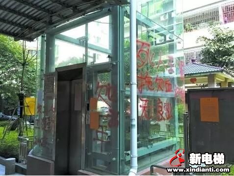 由于未能正常驗(yàn)收,導(dǎo)致20%的工程款無法撥付。于是,施工工人于前幾日在電梯上噴紅漆催款。