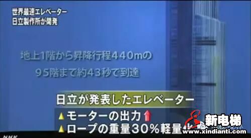 日立方面表示,此前世界上運行最快的電梯是在中國臺灣的一棟高層建筑中,時速約為60.6千米。此次研制的新產(chǎn)品在此基礎(chǔ)上又提速了10多千米,若乘坐這款電梯從1樓到95樓,大概只需要43秒的時間。