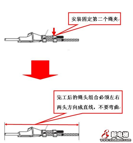 本文分享鍥塊式電梯曳引繩頭組合的操作工序方法