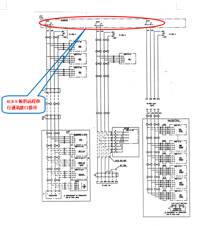 2. 對(duì)轎廂串行通訊線干擾的檢查,必須在確認(rèn)RCB-II板正常無(wú)故障的情況下,拔下所有的串行通訊線上的地址板、顯示板、終端版,用服務(wù)工具在RCB-II板上檢查其狀態(tài),及故障記錄進(jìn)行分析。