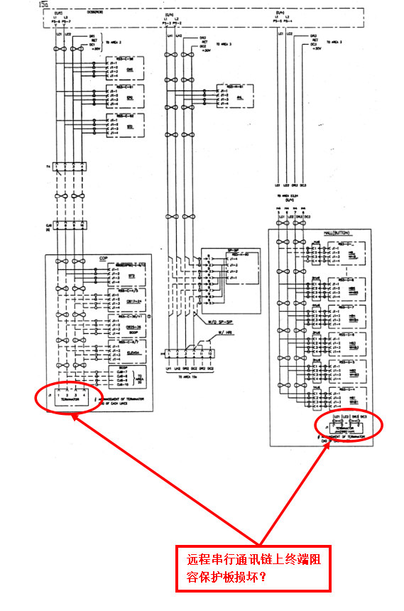 5. 大廳或轎廂遠(yuǎn)程串行通訊鏈上的地址板、樓層信號(hào)顯示板終端阻容保護(hù)板損壞。