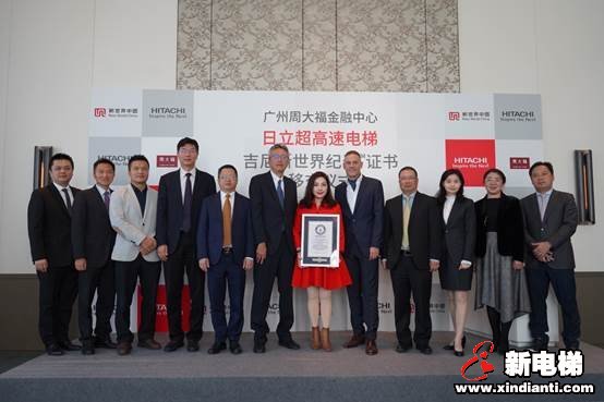 日立超高速電梯吉尼斯世界紀(jì)錄TM證書 移交廣州周大福金融中心