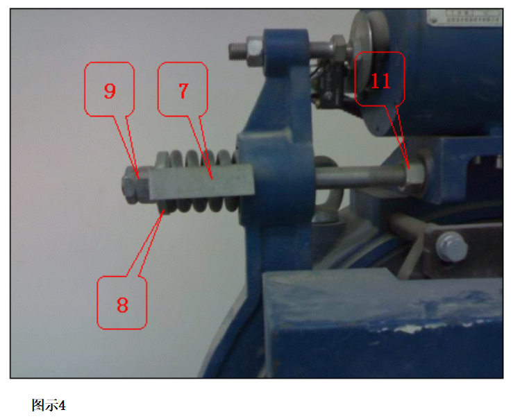 i. 如果沒有旋平,松開圖4中的螺母11,調(diào)整螺栓9直到彈簧桿和抱閘齊平(如果兩邊的底座厚度不同則以厚度少的螺栓旋進(jìn)深度為準(zhǔn).)