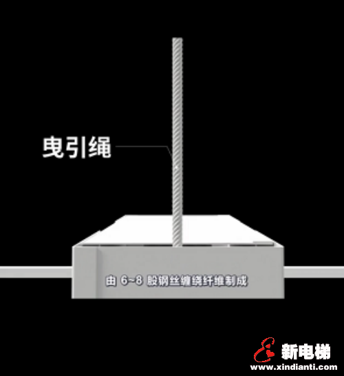 曳引繩,由6~8股鋼絲纏繞纖維制成。