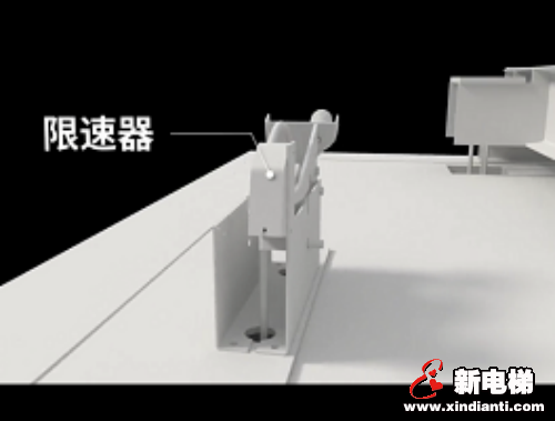 轎廂上連有一根獨立的限速器繩,通過底部和頂部的兩個繩輪形成回路。轎廂一旦超過額定速度的115%,將觸發(fā)限速器開關(guān),卡住限速器繩。