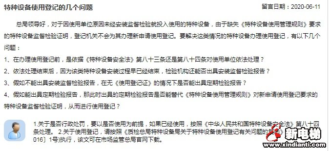 2.關(guān)于使用登記,請按照《質(zhì)檢總局特種設(shè)備局關(guān)于特種設(shè)備使用登記有關(guān)問題的復(fù)函》(質(zhì)檢特函〔2016〕1號)執(zhí)行。