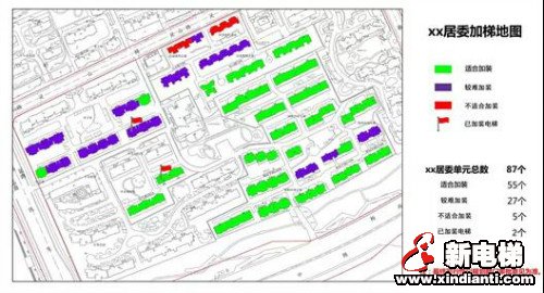 近日,上海市房屋安全監(jiān)察所(上海市住宅修繕工程質量檢測中心)牽頭編制了《上海市既有多層住宅加裝電梯前期調查與可行性評估技術導則(試行)》。目前,虹口區(qū)已經根據(jù)《導則》的要求,率先完成了全區(qū)加裝電梯藍圖的初步繪制?!秾t》對影響加裝電梯的干擾因素進行了分類,在加梯藍圖上對ABC三種不同等級的房屋標上綠、藍、紅三種對應顏色,對于已完成加梯的房屋插上紅旗,使得全市加裝電梯狀況在藍圖上一目了然。