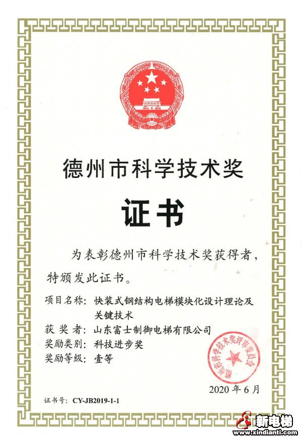 喜訊!山東富士制御電梯榮獲“德州市科技進(jìn)步一等獎(jiǎng)”