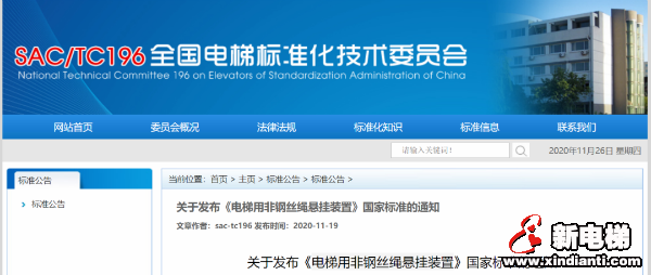 關(guān)于發(fā)布《電梯用非鋼絲繩懸掛裝置》國(guó)家標(biāo)準(zhǔn)的通知