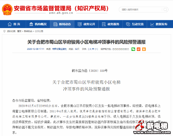 剛剛!合肥華府駿苑電梯沖頂事件原因公布!全省緊急排查!