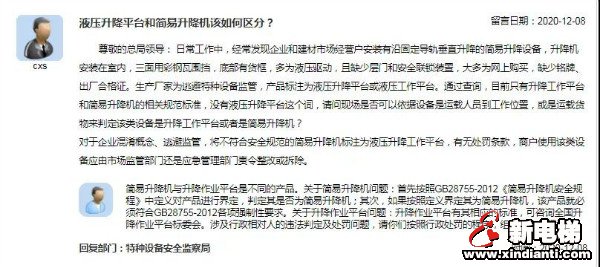 閱讀上文 >> 液壓升降平臺(tái)和簡(jiǎn)易升降機(jī)有啥區(qū)別?總局回復(fù)!