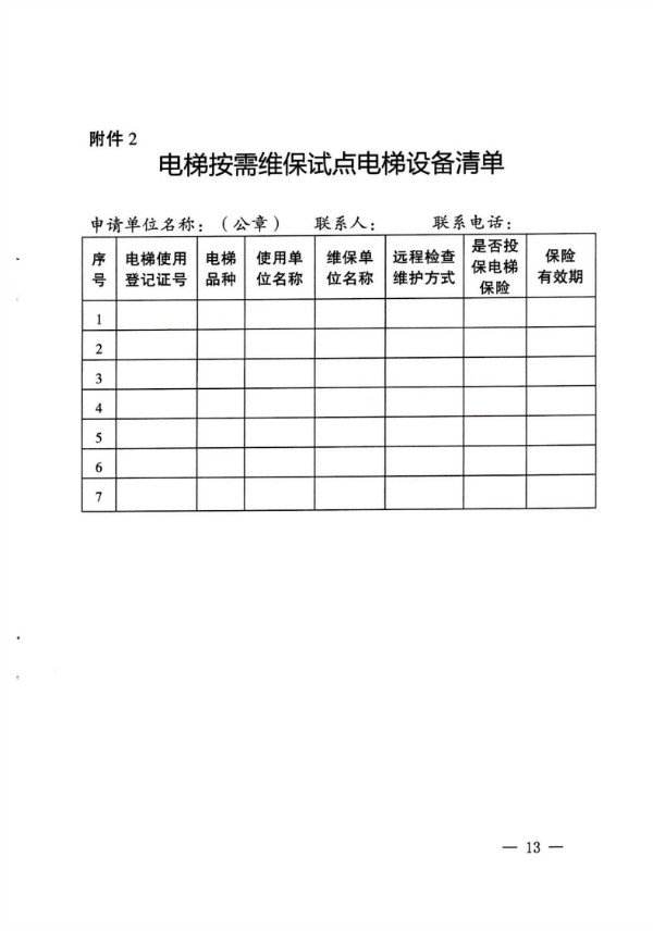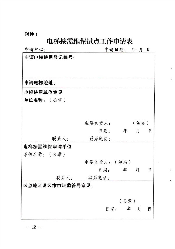 1. 電梯維保單位在征得電梯使用單位書面同意后,向所在設(shè) 區(qū)市市場(chǎng)監(jiān)管部門申請(qǐng)電梯按需維保試點(diǎn),設(shè)區(qū)市市場(chǎng)監(jiān)管部門 統(tǒng)一公布符合條件的電梯維保單位和電梯名單。