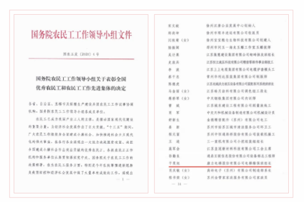 1月6日,全國(guó)優(yōu)秀農(nóng)民工和農(nóng)民工工作先進(jìn)集體表彰大會(huì)在北京成功召開(kāi),國(guó)務(wù)院副總理、國(guó)務(wù)院農(nóng)民工工作領(lǐng)導(dǎo)小組組長(zhǎng)胡春華出席大會(huì)并講話。大會(huì)上,國(guó)務(wù)院農(nóng)民工工作領(lǐng)導(dǎo)小組隆重發(fā)布《關(guān)于表彰全國(guó)優(yōu)秀農(nóng)民工和農(nóng)民工工作先進(jìn)集體的決定》,授予康力電梯股份有限公司干旻旭等994人“全國(guó)優(yōu)秀農(nóng)民工”榮譽(yù)稱號(hào)。