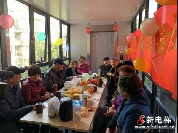 杭州市江干區(qū)閘弄口街道三里亭苑二區(qū)21幢西奧加梯1月20日交付使用,為慶祝即將到來的元宵節(jié),街坊鄰里選擇在電梯連廊舉行鄰里茶話會,聊聊加裝電梯的辛苦與趣事。