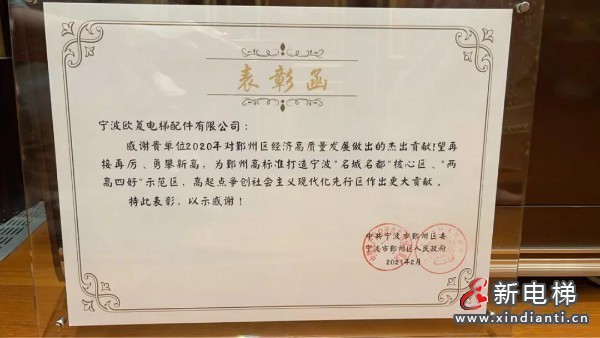 2月19日上午,鄞州區(qū)區(qū)委召開經(jīng)濟工作會議,會上隆重表彰了2020年度為鄞州區(qū)經(jīng)濟高質(zhì)量發(fā)展作出杰出貢獻的骨干企業(yè),獲獎的骨干企業(yè)都是各行各業(yè)的翹楚,寧波歐菱作為電梯配件領(lǐng)域的領(lǐng)先者,榮幸獲此殊榮。