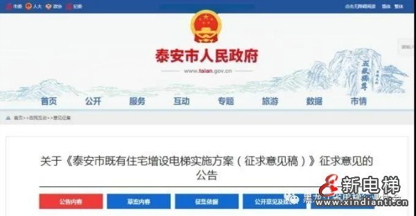 山東省泰安市住房和城鄉(xiāng)建設(shè)局起草了《泰安市既有住宅增設(shè)電梯實施方案(征求意見稿)》。